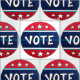 Fabric features an original illustration of a red, white, and blue VOTE sticker. Ideal for getting out the vote in the upcoming presidential election.
