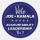 Vote Joe Biden Kamala Harris Accountability Leadership 2024 Election Template sticker. This is a straight-forward template that you can customise for your desired candidate. Design description: The background is a plain file in flag blue. You can remove that and substitute your preferred background colour. Around the edge of the design is a plain, light grey circle. The top of the design has the word "Vote" in a script font. Below that, in all-caps sans serif font is a template with the words, "Joe" and "Kamala," separated by a star. Below that, five stars, and underneath the stars are the template words, "Accountability" and "Leadership." At the bottom is a template for the date of the election or year. The names, characteristics and dates are templates that you can customise for your preferred candidate.