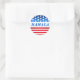 Vote Kamala Harris Custom Text USA Flag Democrats Classic Round Sticker. For a Kamala Harris presidential campaign supporter design, a bold and empowering layout that combines typography and patriotic symbols to create a striking visual statement. At the centre of the design, feature Kamala Harris's name in large, elegant typography. Use a modern font to convey a sense of forward-thinking and progress. To enhance the design's visual appeal, add a subtle, polished finish with a shadow effect, giving the typography a sense of depth and dimension. This approach not only highlights Kamala Harris’s name but also ensures the flag’s colours and patterns stand out vibrantly. This product aims to celebrate Kamala Harris’s candidacy with a strong, patriotic flair, using typography and the U.S. flag to create a powerful, supportive statement for her presidential campaign.
