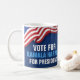 Vote Kamala Harris for President in the 2024 presidential election. Choose our vice president as the democratic party nominee and show your support with this American flag mug in blue for a democrat.