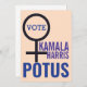 First Woman President Kamala Devi Harris. First President of South Asian descent. First woman of colour Vice-President. This design incorporates colour elements from the Biden-Harris campaign and Kamala's 2020 presidential campaign. Design description: A large woman's symbol of a circle on top of a vertical line bisected by a horizontal line, in a shade of black from Harris's presidential campaign. Inside the circle are the letters VP, for vice-president, in a serif font and the Biden campaign colour Biden Blue. Above and to the right of the horizontal line of the woman's symbol is the word, "Kamala," and just below that is the word "Harris," both in a purple colour and font similar to her presidential campaign. It's easy to change up the colour palette to something that matches your style and mood. At the bottom, in a large bold sans serif font in the same colour as "Vote" is the word POTUS, standing for President of the United States. The background is Rehoboth Beach Peach. You can change the background colour by personalising the design.