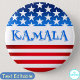 Vote Kamala Harris USA Flag Typography Custom Text button. For a Kamala Harris presidential campaign supporter design, a bold and empowering layout that combines typography and patriotic symbols to create a striking visual statement. At the centre of the design, feature Kamala Harris's name in large, elegant typography. Use a modern font to convey a sense of forward-thinking and progress. To enhance the design's visual appeal, add a subtle, polished finish with a shadow effect, giving the typography a sense of depth and dimension. This approach not only highlights Kamala Harris’s name but also ensures the flag’s colours and patterns stand out vibrantly. This product aims to celebrate Kamala Harris’s candidacy with a strong, patriotic flair, using typography and the U.S. flag to create a powerful, supportive statement for her presidential campaign.