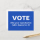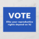 Postcard with a blue background that says Vote ( like your reproductive rights depend on it).