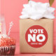Vote No sticker in attention getting white on red. Edit the text line at the bottom to the name of your issue (or delete it if unneeded). Wear or post for any cause or ordinance, proposition or other local election campaign or vote.