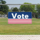 The top is a blue field that says 'Vote' in white letters. Red and white stripes are across the bottom.
