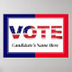 VOTE Text filled with Flag colours with a blue and red border. Add your candidate's name in the space provided. Distinctive.