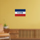 Vote is in blue text in the centre. A blue stripe is at the top. A red stripe is at the bottom. A white stripe is in the middle. You can change the word if desired.