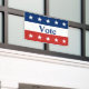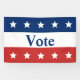 Encourage voting in your community. The top is a blue field that has five white stars. The middle stripe is white and says 'Vote' in dark blue text. The bottom stripe is red with five white stars.