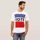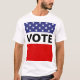 This vote t-shirt features white stars on blue, the word "Vote" and a red square below. Trendy for the voting season 2020.