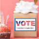 VOTE Text filled with Flag colours with a blue border. Add your candidate's name in the space provided. Distinctive.