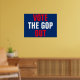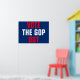 Vote the GOP Out. The GOP has spent ten years clogging up Congress. They've failed, repeatedly, to be a check and balance on Donald Trump's extremist policies. Instead of continuing to get paid by taxpayers to do nothing, it's time for Republicans to exit the political stage and rebuild their party on their own time and their own dime. Design description: Text: Vote the GOP Out. As shown in red and white block text, on a blue background. Colors are customizable.