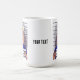 A mug with a funny cartoon about Donald Trump. The background, image and text can be customised. Original artwork by DBcartoons.