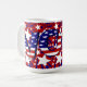 This text image spells out "vote" in red and white stripes with blue and white stars. The backround is red, white and blue resembling our American flag. Stars and stripes. These mugs are available in assorted styles, colours and sizes.