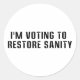 In the spirit of Jon Stewart's Rally to Restore Sanity, is this design reading, "I'm voting to restore sanity". It is bumper sticker sized on all products. Political humour at its best! Whether you are Democrat, Republican, Green, Independant, Libertarian, or "other" political party, these words help you get your message across in a funny way to make people laugh. Hopefully, they will vote, as well!