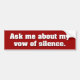 One of my favourite bumper stickers is the "Ask Me About My Vow of Silence" sticker. Embrace your inner monk with this funny bumper sticker