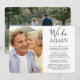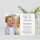 Invite family and friends to a simply elegant vow renewal ceremony and anniversary reception with a stylish 2 photo "We do again" invitation. All wording is simple to customise for any year wedding anniversary. It includes completely personalised information, such as marriage date, surprise party details, dress code, rsvp, website, etc. (IMAGE PLACEMENT TIP: An easy way to centre a photo exactly how you want is to crop it before uploading to the Zazzle website.) The modern minimalist black and white design features two pictures of your choice, elegant handwritten script calligraphy, and simple typewriter style typography. Congratulations to the couple on their milestone celebration! Example photo on back is by Tim Stagge (@tim_stagge) on Unsplash.