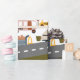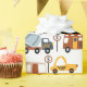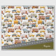 Vroom! Vroom! Your little boy will love this adorable custom car pattern with its own road! Gift wrap has a bus, taxi cab, garbage recycling truck, construction vehicles, tow truck, and more. There is also a road and a green corner for your little one's first name.