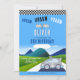 Vroom Vroom Racing Car on a Road Boy Birthday Invitation. Get ready for a wild ride! Join us for an unforgettable birthday party with a car racing theme - simple car with your age number and finish flags. Your little racer will take the wheel and drive through the natural landscape. Come ready for a fun-filled day of games, treats, and of course, lots of vroom, vroom, vroom! Add your birthday information and the age number on the car.