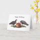 Two vultures eating a chocolate cake cake on this funny birthday card.