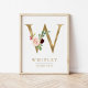 W Letter Monogram Name Marsala Floral Nursery Poster