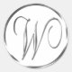 W Monogram Faux Silver Envelope Or Favour Seal. These classic round stickers are printed with non metallic ink on a flat sticker to look like silver. They are not beveled or embossed monograms but are designed to look like they are beveled or embossed monograms. These silver monogram seals are printed on a white background unless you select a different colour background before you proceed to checkout. In addition to being pretty wedding stationery supplies, these elegant wedding invitation envelope seals also make great monogrammed custom Christmas card seals, personalised holiday greeting card envelope seal stickers and customised Xmas card monogram seal stickers.