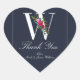 W Monogram Last Initial Modern Blue Floral Wedding Heart Sticker