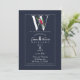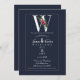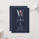 W Monogram Last Initial Modern Blue Floral Wedding Invitation