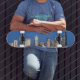 WA, Seattle, Seattle skyline and Elliott Bay 3 Skateboard