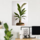 Wabi-Sabi art of a potted green plant with broad leaves standing against a plain white background. The plant pot is made of a light brown material and filled with soil.