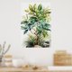 Wabi-Sabi art depiction of a lush plant with broad, green leaves is depicted alongside some leafy branches, emerging from a natural setting. The plants exude a of freshness and vitality against a light background.