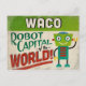 A funny Waco Texas vintage travel postcard featuring a friendly robot with fun retro style text that says, "Waco, Robot Capital of the world!"