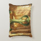 The cushion is small to medium sized. It can be washed. It is well constructed. The material used is pleasant and feels decent quality. It has a very slight plush feel which is good. It is well labelled and its care clearly stated. Theres nothing not to like about it. All in all a good item. The deduction of one star overall is due to long delays in delivery to the UK. It's not clear if this was due to Zazzle or somewhere else in the chain as I did not receive status updates of dispatch or progress. I cannot comment anymore on that other than to say that was our experience but it may not be the same for you. The printing was surprisingly close to what we were expecting. Its an art piece and on material so its hard to assess the precision of printing but it seems close to the original. The soft lines are reproductions of the original. The colour is a fair reflection of the painting. This was printed in the US and it looks like US quality. No issues.
