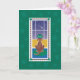 Patrick's Day" greeting card features a charming and whimsical, derby-wearing, pipe-smoking, green beer-wishing, shaggy-eared Irish Setter -- beautifully framed with a wrapping paper green, shamrock-clover-filled background.