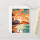 Waikiki Beach Hawaii Vintage Travel Illustration Postcard
