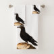 Raven Black Bird , Crows, Blackbirds Bathroom Towel Set - Raven perched on a tree log black and white themed home decor bath towels. Ready to give a proper greeting to your guests with your spirit animal. The Raven is a clever bird indeed. The background you can customise. text, colour, style of your totem and love of this bird perched on a tree log wild nature.