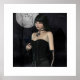 Foreboding overtakes you when you see this beautiful girl and her mystery companion waiting for you in the gloomy, moonlit countryside. What does she want or does her companion bring you a message of beware? Enjoy this poster on your wall or make it the perfect atmosphere gift for friends or family!