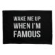 'Wake me up when I'm famous' phrase on a black background.