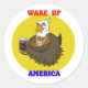 Wake Up America-Bald eagle drinking coffee Classic Round Sticker