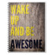 Wake up and be Awesome inspirational notepad. Reproduction of a hand painted inspirational phrase on wood. Year 68 Designs
