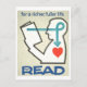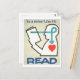 This postcard is a reproduction of a vintage library poster that reads, "For a richer, fuller life, wake up and read."