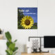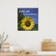 Wake up, it's a beautiful day poster. Perfect sunflower in blue sky. Floral nature photography.