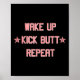 Wake Up Kick Butt Repeat Fun Cool Motivational ! Poster