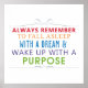 Colourful and positive affirmation Always Remember to Fall Asleep With a Dream and Wake Up with a Purpose