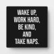 Wake Up, Work Hard, Be Kind, and Take Naps - Funny Plaque