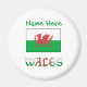 Personalised round magnet featuring the Welsh Flag with the word WALES underneath. A place for your name, in green letters, provides the ability to create a personalised touch. Or, create a customised gift by adding someone else's name. Great stocking stuffer or Hanukkah gift. Fun to take to travel groups, clubs, and family reunions. Makes a lovely party favour, too.