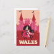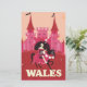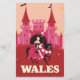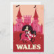 Beautiful vintage style Welsh travel poster of a knight on a horse and a old castle.