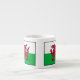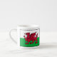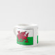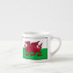 The Welsh national flag has a white and green background with a red dragon in the centre. The dragon is the Red Dragon of Cadwaladr, King of Gwynedd, and is known as Y Ddraig Goch in Welsh. Note that different renderings of the dragon may be used. The flag was officially adopted in 1959.