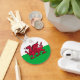The Welsh national flag has a white and green background with a red dragon in the centre. The dragon is the Red Dragon of Cadwaladr, King of Gwynedd, and is known as Y Ddraig Goch in Welsh. Note that different renderings of the dragon may be used. The flag was officially adopted in 1959.