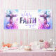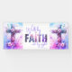 Two floral crosses bloom with butterflies and soft foliage, framing the timeless message: Walk by faith, not by sight. Set against a gentle gradient of pink, blue, and lavender, this design evokes spiritual trust and quiet beauty.