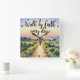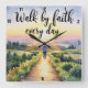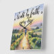 This serene wall clock depicts a lone figure walking confidently on a brightly illuminated path, winding through a vibrant landscape of trees and distant mountains under a beautiful sunrise or sunset sky. The encouraging message, "Walk by faith every day," is prominently displayed. With its tranquil, painterly style, this timepiece serves as a constant, uplifting reminder to embrace a daily walk of faith, guided by divine light and purpose.